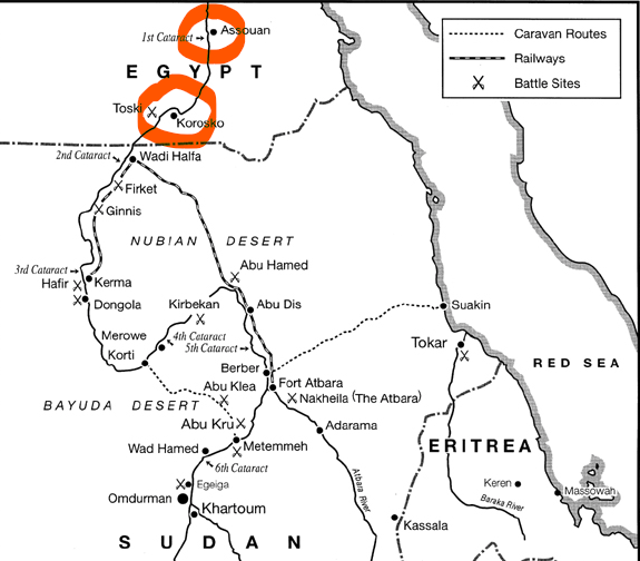 This map shows the Nile in its entirety. The Gordon Relief Expedition had a specific mission. Khartoum was to be reached by ascending the Nile using modified Royal Navy whalers, and across land by camel. It was a daunting mission.